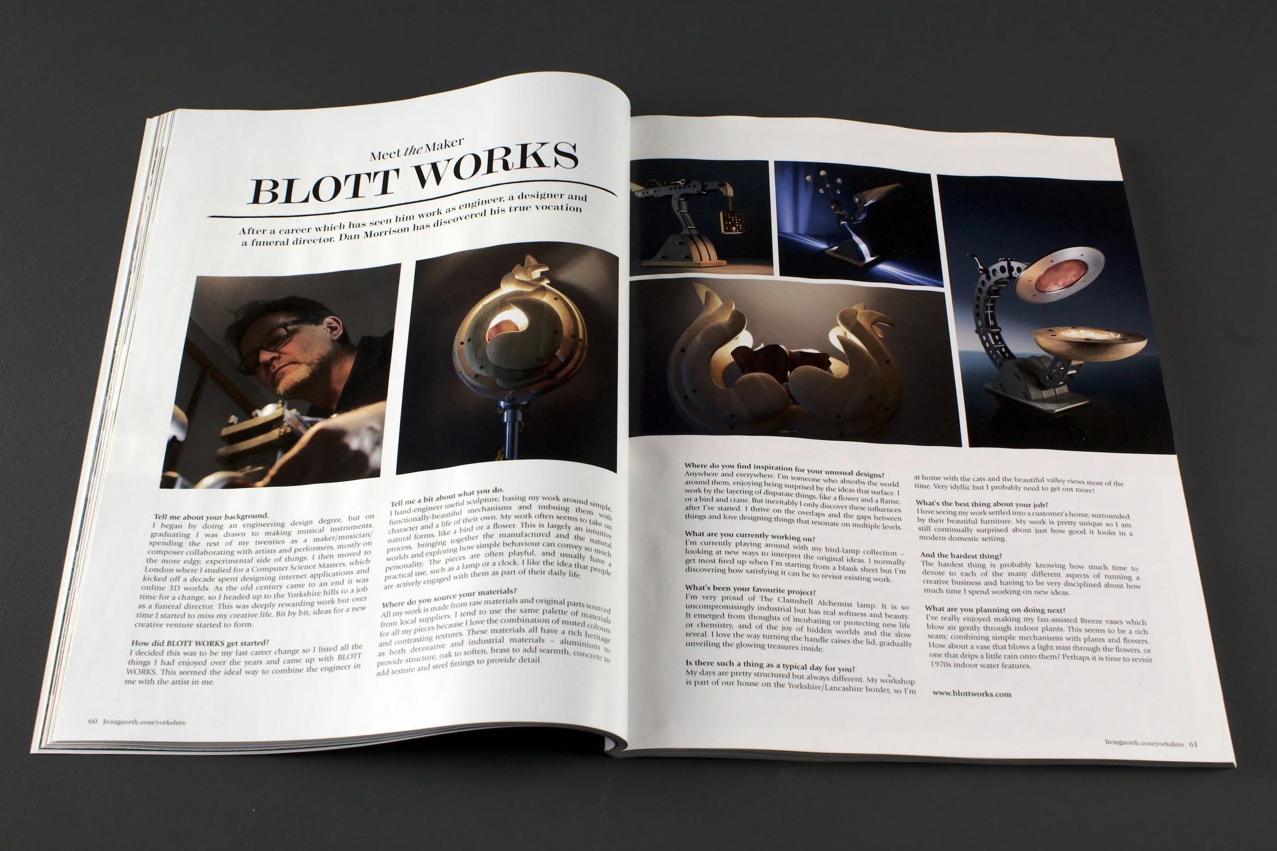 "We were delighted to select Dan Morrison's BLOTT WORKS for our Award at the GNCCF last autumn, his extraordinary limited edition, hand engineered, functional sculptures are fascinating, intriguing and very clever indeed! BLOTT WORKS is like nothing we've ever seen before"